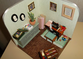 I remember she wore the thimble on her finger see the waste basket. her favorite fragrance was Lily of the Valley.